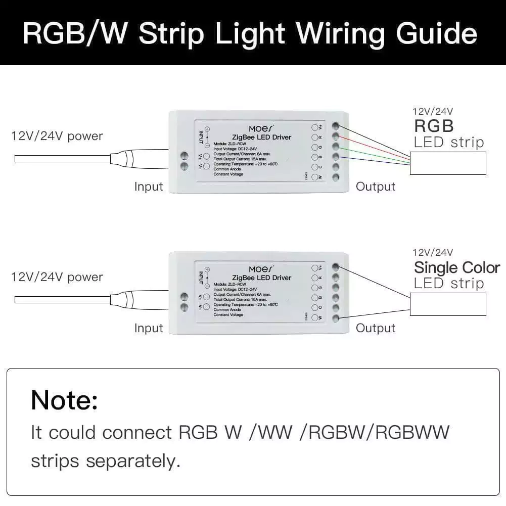 Kit MOES ZigBee Tira LED RGB+CCT 5M con Controlador | Sin Fuente de Alimentación | Compatible con Home Assistant, Alexa y Google Home